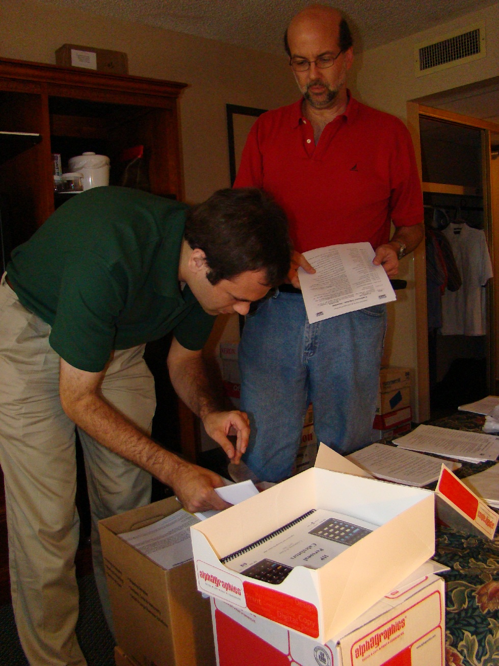 Richard Nelson and Eric Rechlin begin to sort through Conf materials